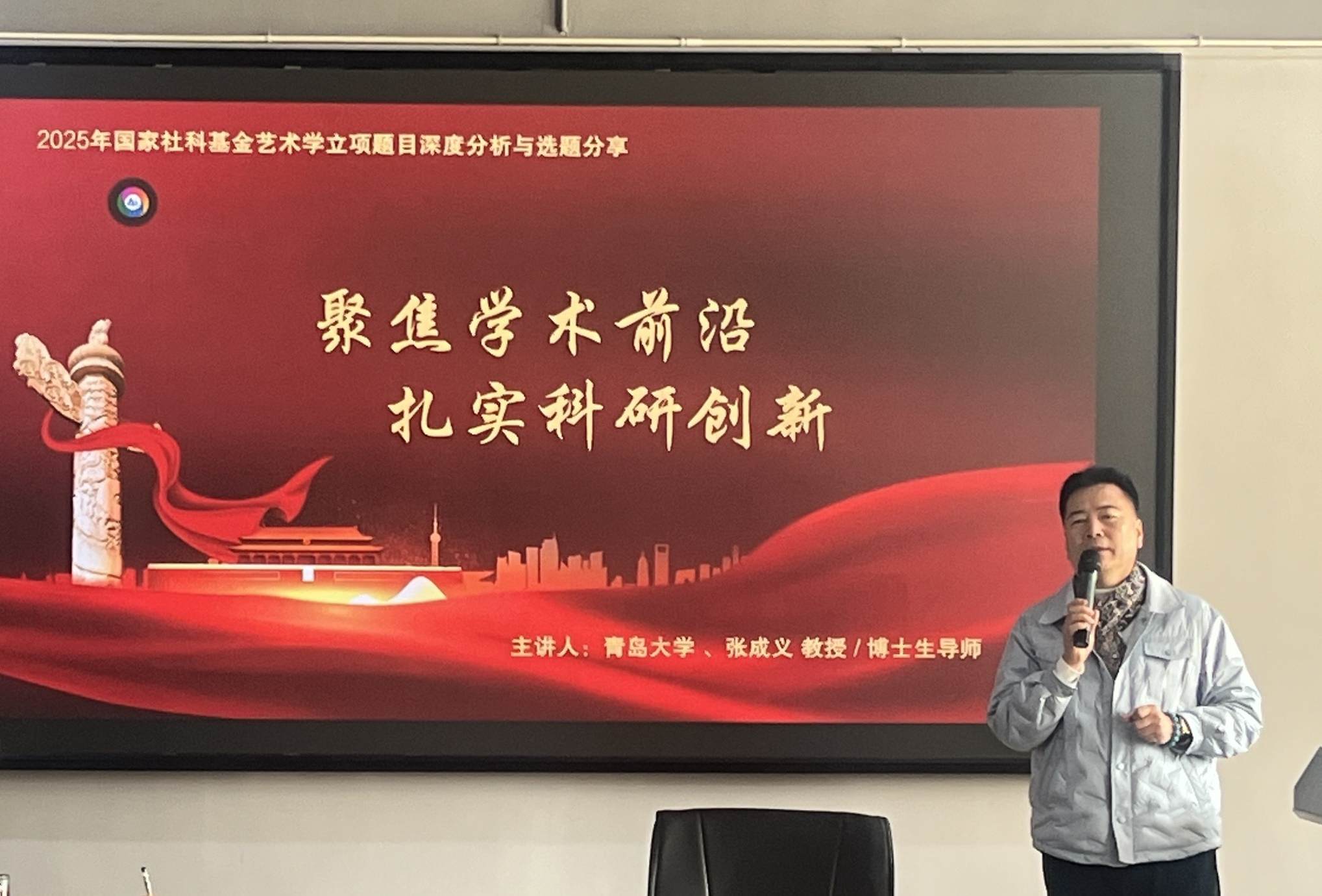 讲座中,张成义教授结合自身丰富的课题申报与评审经验,对2025年度国家社科基金艺术学立项项目进行了归类分析,深入剖析了当前立项项目的热点趋势与特点,并从多个维度解读了选题的关键切入点,为在场教师提供了兼具理论指导性和实践操作性的申报思路。