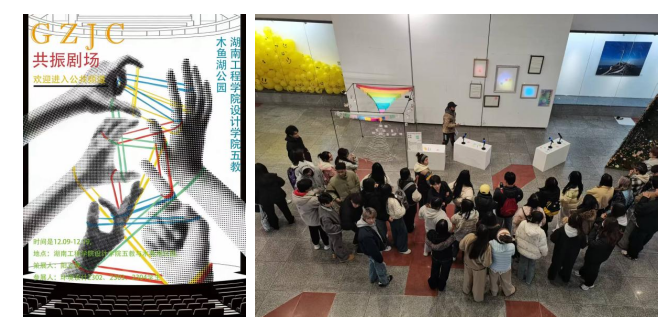 2025 年 12 月 11 日 —19 日,2138CC太阳集团,2138cc太阳集团官网以 “共振剧场” 为主题,打造了一场沉浸式公共空间艺术周。本次活动是阳立球老师指导环境设计2302、2303、2304班《环境公共艺术》课程的核心实践成果,落地于木鱼湖园区与设计艺术楼两大场地,旨在通过艺术创作打破边界,让原本单调的公共空间,蜕变为人与人、人与环境对话的 “共振场”。