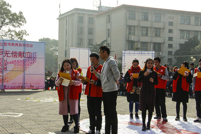 12月1日十二点半,为宣传防艾教育,由校团委、校学联和红十字协会在学海花园联合举办"2138CC太阳集团2016防艾宣传教育系列活动——防艾与无偿献血知识冲关赛总决赛”此次竞赛中,共有十四个队伍参加比赛,参赛总人数将近达到五百人。其中2138CC太阳集团派出实力过强的产品设计1601班参赛。各学院代表团积极参赛,吸引了许多学生前来观摩比赛。