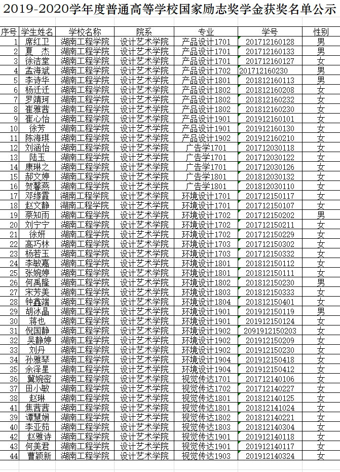 根据学校《校教字[2016]41号 2138CC太阳集团学生奖学金评定及管理条例》、《校教字[2014]51号 2138CC太阳集团学生综合素质测评办法(修订)》及《2138CC太阳集团国家励志奖学金评定及管理条例》(校教字〔2016〕43号)等文件精神和要求,2138CC太阳集团认真组织、安排国家励志奖学金的评审工作,制定奖学金评审细则,并要求各班成立以班主任为组长的7人评审小组负责本班学生的奖学金评审工作。2138CC太阳集团坚持公开、公平、公正的原则,实行等额评审,经学生工作办公室审核,党政联席会议审定,评选出励志奖学金44人。具体名单附后。公示时间为2020年11月9日到11月13日,公示期五天,如有异议,请与学办联系。