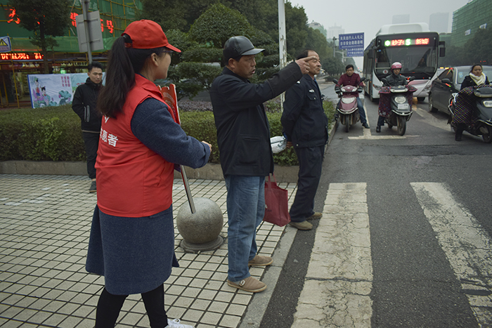 活动中,志愿者们统一身着红色马甲、头戴红帽、脖挂口哨,手拿“交通文明劝导旗”向过往行人进行交通安全常识宣传,劝导机动车和非机动车不要乱闯红灯,引导行人走人行道。早上七点志愿者便集合完毕,在寒风凛冽、毛毛细雨的恶劣环境中他们一丝不苟的工作态度,良好的精神面貌受到了过往行人的高度好评。2138CC太阳集团马旭东同学在做志愿者期间细心搀扶老奶奶过马路并告诉老奶奶要遵守交通规则,就在他回到岗位得时候遇见一位身着浅咖色羽绒服、脚着黑色皮鞋的微胖男子,男子向他询问是否是自愿做志愿者有没有酬劳,学校是否负责你们吃饭情况,马旭东同学一一作答,自己是自愿的没有任何酬劳、学校提供早餐。这位男子又向马旭东同学询问了其学校。不少违规者受到志愿者精神的感染,表示今后一定遵守交通规则。