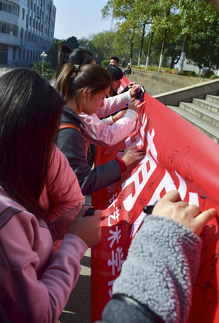 近日,学海三栋贵重物品被盗,给一些同学带来了严重财产损失。晏莉老师强调讲了宿舍安全问题,指出大学生要有安全意识、财产保护意识,还要注意网络安全问题,不轻易泄漏个人信息,网上钱财交易要慎重,提醒同学不要依赖校园贷。本月是考试诚信月,即将迎来英语四六级考试,呼吁广大学生要诚信考试。随后,张澎老师对日常旷课、早签到、晚归、宿舍大功率等情况进行了通报并总结,继而宣读了文明寝室称号获奖名单、防艾滋活动荣誉班级奖。最后,举行诚信教育签字仪式,各班级有秩序地上前签字。