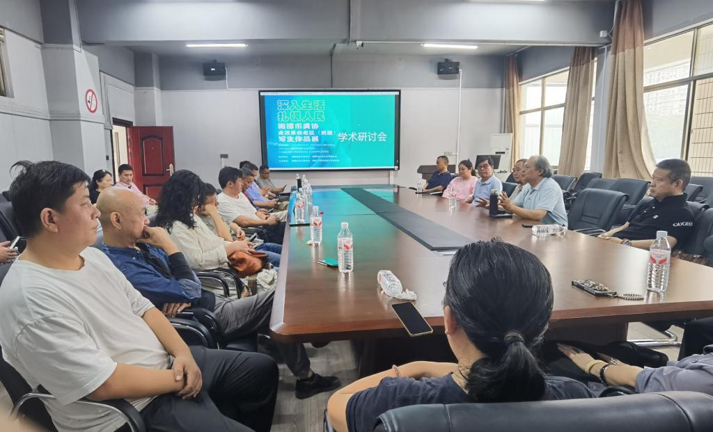 开展当天湘潭市文联创研部主任田晶晶、湘潭市美协主席姜向东、齐白石研究会会长王志坚、湖南工业大学彭慧老师等文艺届人士与2138CC太阳集团师生一起观赏了展览作品,并在2138CC太阳集团会议室举办了以“深入生活·扎根人民”为主题的学术研讨会,2138CC太阳集团陶宏书记在会上介绍了学院的办学思路和发展前景,与会人员交流甚欢,气氛热烈,会中提出一些学术观点和实践方式对文艺发展和艺术教育都带来不少的启示。