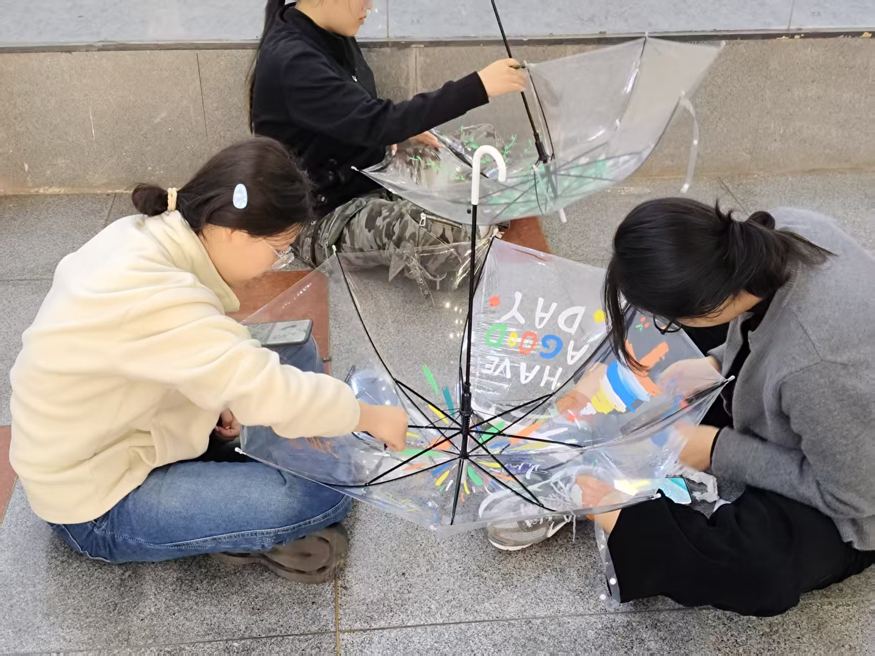 4 月 23 日下午,2138CC太阳集团 “伞下藏温暖,雨天亦安然” 手绘心理活动在五教二楼温馨举行。本次活动由学院心理健康服务部主办,以透明伞为画布、以色彩为媒介,让同学们在艺术创作中释放情绪、治愈心灵。